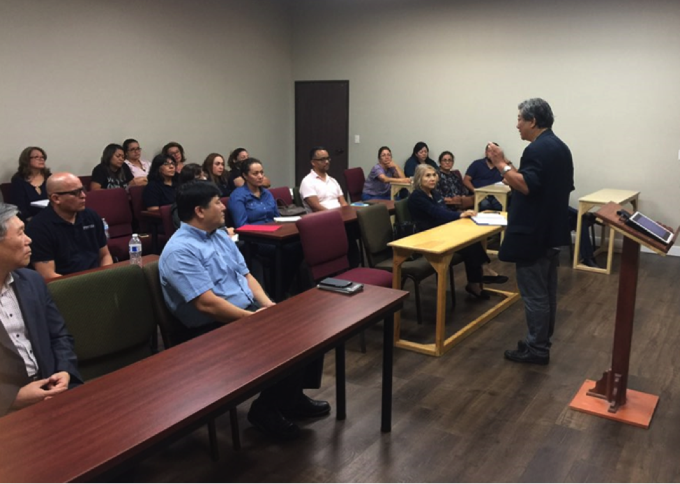 스페니쉬권에서 사역하는 기독교 사역자를 양성하고자 새롭게 개설된 본교 라틴 아메리칸 프로그램의 신입생 오리엔테이션이 지난 9월27일(수)에 있었다. 이 날 신입생 20여명과 본교 임성진 부총장, 신선묵 교수, 이준성 교수, 장경호 목사가 참석한 가운데 학교소개 및 교과내용과 학사일정을 안내하는 시간을 가졌다. 선교의 새바람이 뜨겁게 일고 있는 라틴 아메리카의 선교의 구심점 역할을 감당하고자 신학의 첫 발을 내딛은 이들의 각오가 사뭇 진지하게 내비쳤다. 신입생들은 앞으로 라틴 아메리칸 프로그램을 통해 성서학 준학사(AABS), 성서학 학사(BABS) 등의 미국 정규 학위과정을 공부하게 된다. 본교 라틴 아메리칸 프로그램을 위해 담당 디렉터로 이준성 교수가 임명되었고, 장경호 목사와 이에스텔라가 코디네이터로 함께 일하게 되었다.
